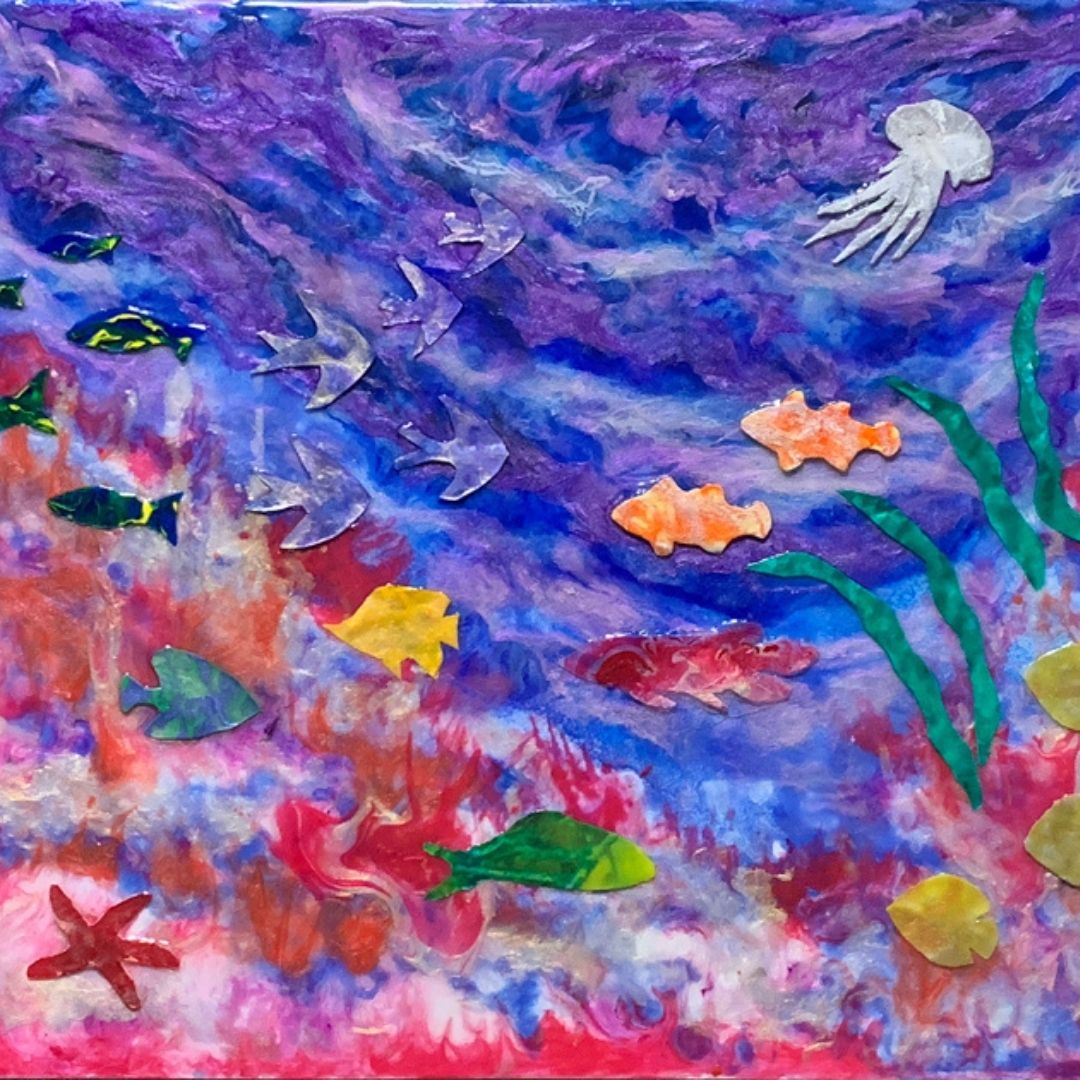 “On the surface, I do not keep to a single style or subject area. However, there are patterns across all of my work: bright, pure colours with multiple visual effects, flowing elements with references to water, and the blending of realist, surrealist, primitive and abstract elements.”
